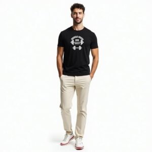 Black Round Neck T-Shirt for Men, Polyester Fabric, Gym, Running, Workout Wear, Half Sleeves with Stylish Front Print