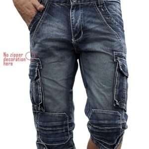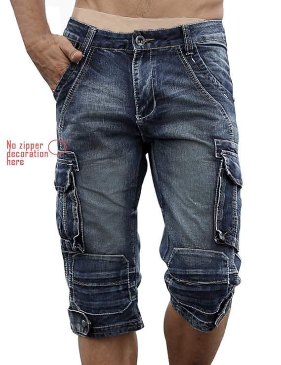 Idopy Men`s Cargo Denim Biker Jeans Shorts With Zippers