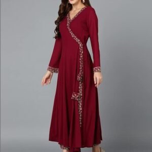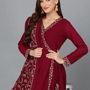 Women’s Georgette Embroidered Flared Angrakha Pant With Dupatta With Inner